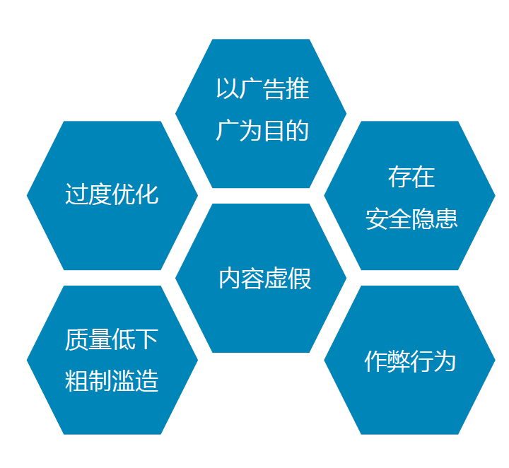 網站違規内容——出現這些百度不收錄 違規行(xíng)爲 百度搜索拒絕質量低下、粗制(zhì)濫造,不能(néng)滿足用(yòng)戶需求或不以滿足用(yòng)戶需求爲目的(de),甚至對用(yòng)戶造成傷害的(de)頁面,一旦發現有(yǒu)違規行(xíng)爲将會(huì)對網站降級及封号處理(lǐ),需要運營者在内容上(shàng)一定要重視。 ![]() 内容違規行(xíng)爲包括但(dàn)不限于: 1. 過度優化 ① 關鍵詞刻意重複。 ② 文(wén)不對題,或标題存在歧義。 ③ 使用(yòng)虛假關鍵詞吸引點擊,如(rú)XX官方網站等。 2. 質量低下粗制(zhì)濫造 包括但(dàn)不限于 ① 低成本采集複制(zhì)加工(gōng)互聯網上(shàng)已有(yǒu)資源。 ② 語音(yīn)不明(míng),病句、錯别字較多有(yǒu)礙于讀(dú)者理(lǐ)解閱讀(dú)。 ③ 内容空短,或者有(yǒu)很少(shǎo)量的(de)内容,卻不能(néng)支撐頁面的(de)主要意圖。 ④ 問答頁有(yǒu)問無答,或回答完全不能(néng)解決問題。 ⑤ 圖文(wén)之間無關聯;圖片質量低、畫面不清晰。 3. 以廣告推廣爲目的(de) 包括但(dàn)不限于 ① 商品廣告,如(rú):淘寶店(diàn)、微店(diàn)等。 ② 推廣内容裏含有(yǒu)網址。 ③ 推廣内容裏含有(yǒu)聯系方式,電話(huà)、微信、QQ群等,無論二維碼還是圖文(wén)等形式。 ④ 推廣微信或微信公衆号,帶有(yǒu)明(míng)顯營銷意圖的(de)、使用(yòng)文(wén)字變種,如(rú)「威信」、「薇信」、「微^信公衆`号」的(de),情節嚴重者将予以封禁。 ⑤ 誘導用(yòng)戶點擊/關注此網站之外的(de)其他(tā)帳号,如(rú):關注領獎、關注看答案、關注獲取下載資源等。 4. 内容虛假 包括但(dàn)不限于 ① 違背科學常理(lǐ),與基本邏輯相(xiàng)悖的(de)内容。 ② 無中生有(yǒu)的(de)内容或污誣蔑造謠。 5. 存在安全隐患 包括但(dàn)不限于 ① 帶有(yǒu)病毒或木馬。 ② 獲取用(yòng)戶隐私。 6. 作弊行(xíng)爲 包括但(dàn)不限于 ① 堆詞作弊:重複堆積與頁面内容相(xiàng)關、不相(xiàng)關或者多餘的(de)熱(rè)門關鍵詞。 ② 穿插作弊:内容穿插一般出現在網頁主要内容(主體内容)中,在文(wén)章(zhāng)中随意穿插2個(gè)以上(shàng)關鍵詞,破壞原有(yǒu)語義,令人(rén)無法讀(dú)通。 ③ 标題作弊:标題指網頁頂部導航條顯示的(de)文(wén)字内容,多爲對網頁内容的(de)歸納或簡單描述,對應爲網頁源碼的(de)title字段。标題作弊則是指站長通過設置虛假的(de)title來吸引用(yòng)戶點擊,或者在title中增加過多的(de)修飾詞,來希望獲取更多的(de)流量的(de)行(xíng)爲。 ④ 文(wén)不對題:在網頁内容中找不到(dào)與網頁正文(wén)标題相(xiàng)關的(de)内容,用(yòng)戶看到(dào)網頁正文(wén)标題後會(huì)認爲頁面中會(huì)包含的(de)内容、實際網頁内容中找不到(dào)有(yǒu)用(yòng)的(de)信息。惡劣的(de)文(wén)不對題是指網頁正文(wén)标題和(hé)内容完全說的(de)是兩碼事,無任何交集。 ⑤ 受益作弊:受益作弊分(fēn)爲受益聯系方式和(hé)受益鏈接兩類,前者包括電話(huà)、郵箱、QQ、微信、二維碼、旺旺等IM聊天工(gōng)具,後者則包括看得見的(de)鏈接和(hé)無法看見的(de)鏈接。 ⑥ 跳轉類作弊: 惡意跳轉(包含強制(zhì)下載):用(yòng)戶打開(kāi)看到(dào)的(de)url與搜索結果中的(de)url不同,或者當用(yòng)戶點開(kāi)頁面之後,頁面自動執行(xíng)下載行(xíng)爲(下載病毒、播放(fàng)器(qì)或者色情App),跳轉後頁面不能(néng)滿足query需求。 父頁跳轉(惡意篡改搜索結果頁):如(rú)點擊某一條搜索結果後,發現百度搜索結果頁url跳轉了,跳轉到(dào)一個(gè)假的(de)百度搜索結果頁,并把剛才點擊的(de)那條搜索結果排在了假百度的(de)放(fàng)置在頂部的(de)廣告區域。 ⑦ 隐藏文(wén)字作弊:将作弊的(de)文(wén)字(關鍵詞)用(yòng)透明(míng)字體寫在頁面上(shàng),從搜索引擎騙取關鍵詞的(de)相(xiàng)關性,但(dàn)從正常的(de)網頁上(shàng)是看不見的(de)。如(rú)用(yòng)戶在百度搜:金(jīn)剛葫蘆娃,點開(kāi)一條隐藏文(wén)字的(de)作弊結果,頁面上(shàng)既無金(jīn)剛葫蘆娃的(de)視頻資源或介紹,整個(gè)頁面上(shàng)連葫蘆娃三個(gè)字都(dōu)看不見。 ⑧ 圖片/視頻類作弊:将以上(shàng)多種作弊手段中的(de)違法、詐騙信息打在圖片或視頻中。此種作弊,與違法信息、受益作弊、引導用(yòng)戶行(xíng)爲會(huì)有(yǒu)重複,區别在于展現形式不同。 ⑨ 軟文(wén):通過講一個(gè)故事、報道一篇新聞、介紹一種經驗等在頁面内容中間變向做商業(yè)推廣。其真實目的(de)是爲了宣傳企業(yè)或者産品,目的(de)性非常強的(de)推廣,并不是爲了客觀介紹。 |